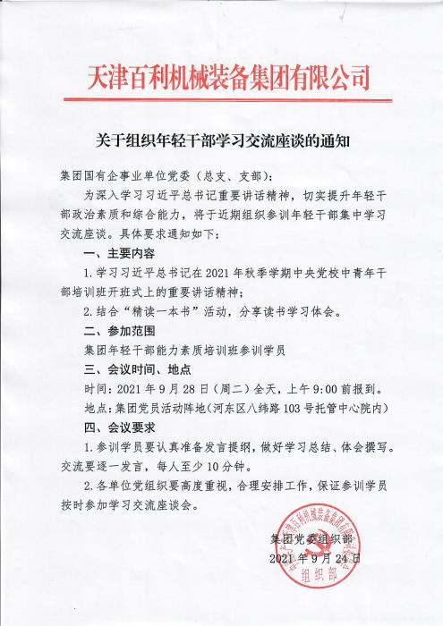 關(guān)于組織年輕干部學(xué)習(xí)交流座談的通知